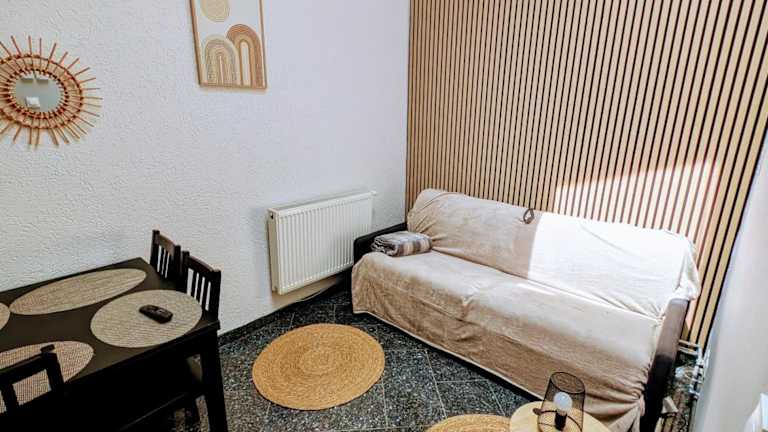 Die Villa im Logement privé dans une Villa avec piscine verfügt über 2 Schlafzimmer und 1 Badezimmer, die Platz für bis zu 4 Personen bieten. Die Zimmer sind geschmackvoll eingerichtet und bieten Ihnen eine komfortable und gemütliche Atmosphäre. Zur Ausstattung gehören auch Bettwäsche, Handtücher und ein Flachbild-TV. Die voll ausgestattete Küche ermöglicht es Ihnen, Ihre eigenen Mahlzeiten zuzubereiten, und der Essbereich bietet ausreichend Platz für gemeinsame Mahlzeiten. Auf der Terrasse können Sie den Blick auf den Garten genießen und sich entspannen.