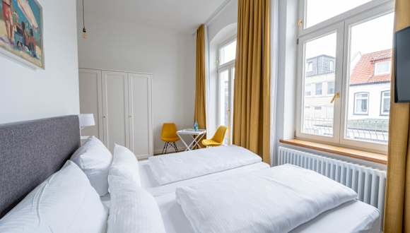 Am Rande der Norderneyer Fußgängerzone ragt die markante weiße Fassade des Logierhauses am Rathaus in die Höhe. Seit vielen Jahren ist das Hotel ein beliebter Anlaufpunkt. Es erwarten dich modern eingerichtete Zimmer und neu eingerichtete Apartments. Ein reichhaltiges Frühstücksbuffet wird Dir im direkt nebenan gelegenen Logierhaus Austernfischer im gemütlichen Frühstücksraum serviert.