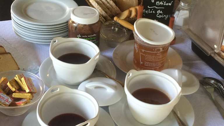 Ein Frühstück wird in Form eines Buffets angeboten. Das Restaurant ist von Donnerstag bis Montag zum Mittagessen und am Freitag und Samstag abends geöffnet. Für spezielle Ernährungsbedürfnisse können auf Anfrage entsprechende Speisen vorbereitet werden.