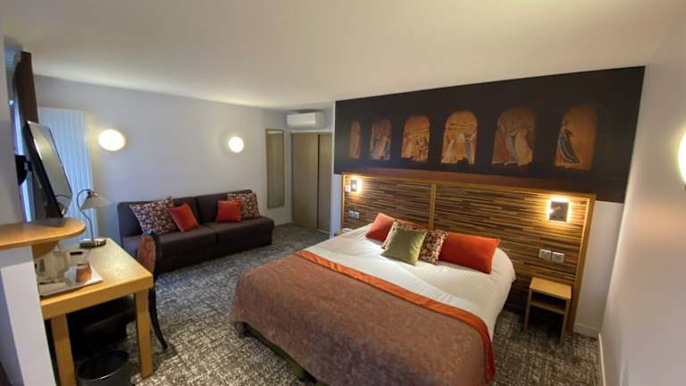 Das Hotel Logis - Le Christina verfügt über 64 Zimmer, die alle klimatisiert sind und kostenfreies WLAN bieten. Jedes Zimmer ist mit einem Flachbild-TV mit internationalen Sendern ausgestattet. Das eigene Badezimmer verfügt über eine Dusche, eine Badewanne und einen Haartrockner. Einige Zimmer sind rollstuhlgerecht und es stehen Zustellbetten zur Verfügung.