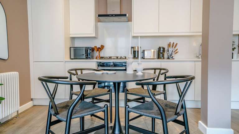 Jede Wohneinheit verfügt über eine voll ausgestattete Küche, die mit einem Kühlschrank, einer Herdplatte, einem Toaster, einer Kaffeemaschine und einem Wasserkocher ausgestattet ist. Ein Esstisch ist ebenfalls vorhanden, was die Selbstverpflegung erleichtert.
