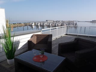 Exclusive Doppelhaushälfte auf 3 Ebenen, in einzigartiger Lage an der Westmole des OstseeResorts zwischen Schlei und Hafen, mit 127 qm Wohnfläche, Terrasse und Dachterrasse, Kamin, Sauna, Whirlpool – und faszinierendem Weitblick! Großer lichtdurchfluteter Wohn- und Eßbereich im Erdgeschoß, separate Küche, 2 Schlafzimmer mit hochwertigen Boxspring-Doppelbetten im Obergeschoß, Wohn-/ Schlafbereich auf der Galerie im 2. Obergeschoß mit bequemem Schlafsofa, eine weitere Schlafcouch im unteren Wohnbereich, sowie 2 Duschen bieten im Maximalfall selbst 8 Personen noch genügend Raum zum Wohlfühlen... Für diesen Fall stehen dann auch 2 Parkplätze direkt vor der Haustür (kostenlos) zur Verfügung! Infos unter https://LootsenHusOlpenitz.fewodu.de. Weitere Infos zum OstseeResort Olpenitz und meinen insgesamt 8 Ferienimmobilien, alle Preise, freie Termine und Direktbuchung finden Sie unter www.UrlaubInOlpenitz.de.
