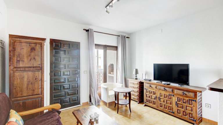 Die Unterkunft Los Angeles 53 Roses - Immo Barneda bietet ein Ferienhaus mit einem Außenpool und besteht aus einem Schlafzimmer, einem Wohnzimmer, einer voll ausgestatteten Küche und zwei Badezimmern.