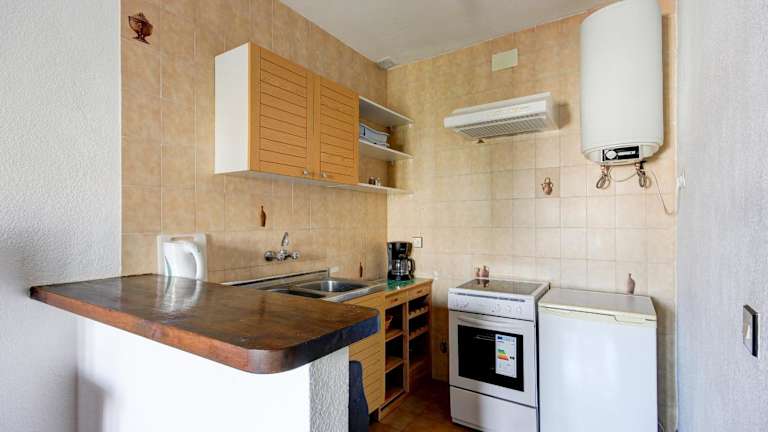 Die Küche im Ferienhaus ist komplett ausgestattet und bietet unter anderem einen Kühlschrank und eine Kaffeemaschine. Es sind keine weiteren Verpflegungsmöglichkeiten angegeben.