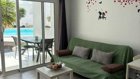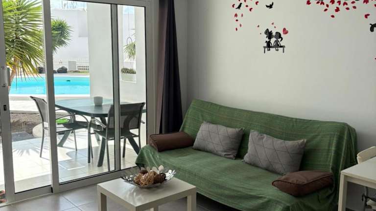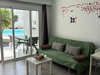 Die Ferienwohnung mit Klimaanlage umfasst ein Schlafzimmer, ein Wohnzimmer und eine voll ausgestattete Küche mit Kühlschrank und Kaffeemaschine. Zudem sind ein Badezimmer mit Dusche und Haartrockner vorhanden. Handtücher und Bettwäsche werden bereitgestellt. Die Unterkunft bietet zudem eine Veranda oder einen Patio mit Blick auf den Pool.