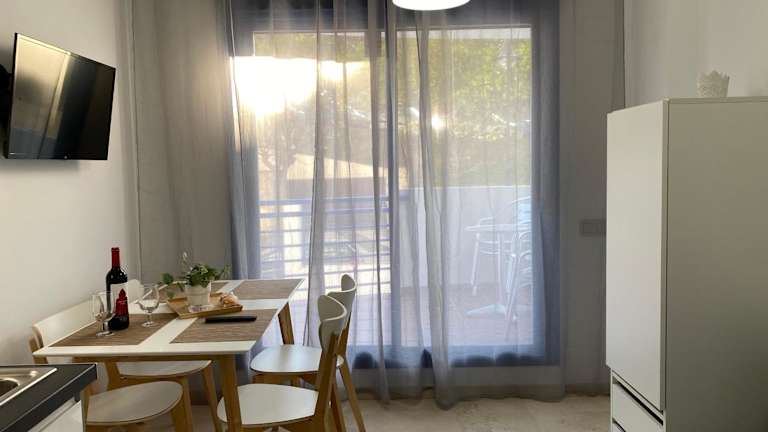 Die Ferienwohnung umfasst ein Schlafzimmer, ein Wohnzimmer, eine voll ausgestattete Küche mit Kühlschrank und Kaffeemaschine sowie ein Badezimmer mit Bidet und Dusche. Handtücher und Bettwäsche werden bereitgestellt.