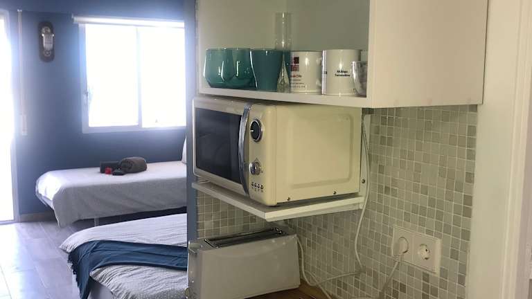Das Apartment im Kyo Verdiales Apartamento ist gemütlich eingerichtet und verfügt über eine individuelle Ausstattung. Die Küche ist mit einem großen Kühlschrank und einer Mikrowelle ausgestattet, sodass Sie sich wie zu Hause fühlen können. Kostenloses WLAN steht Ihnen während Ihres Aufenthalts zur Verfügung. Für zusätzlichen Komfort gibt es eine Waschmaschine und ein Bügeleisen/Bügelbrett.