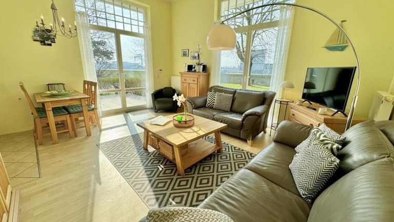 Das Lotsenhaus/Traumschiff bietet eine Terrasse mit Meerblick, die eine entspannende Atmosphäre schafft. Die Unterkunft ist umgeben von einem Garten und bietet kostenlose Privatparkplätze für die Gäste.