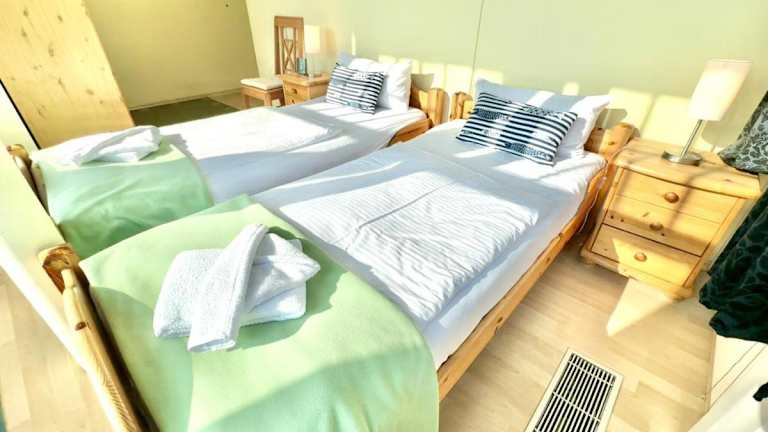 Die Ferienwohnung verfügt über zwei Schlafzimmer und eine Küchenzeile, die mit einem Kühlschrank und einem Geschirrspüler ausgestattet ist. Die Unterkunft bietet zudem kostenloses WLAN und Kabel TV.