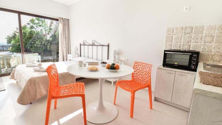 In den Louiza Apartments haben Sie die Freiheit, Ihre eigenen Mahlzeiten zuzubereiten, da jede Unterkunft über eine voll ausgestattete Küche verfügt. Alternativ können Sie auch die nahegelegenen Restaurants erkunden und die lokale Küche probieren. Agios Gordios bietet eine Vielzahl von Restaurants, die Ihnen eine große Auswahl an Gerichten anbieten.