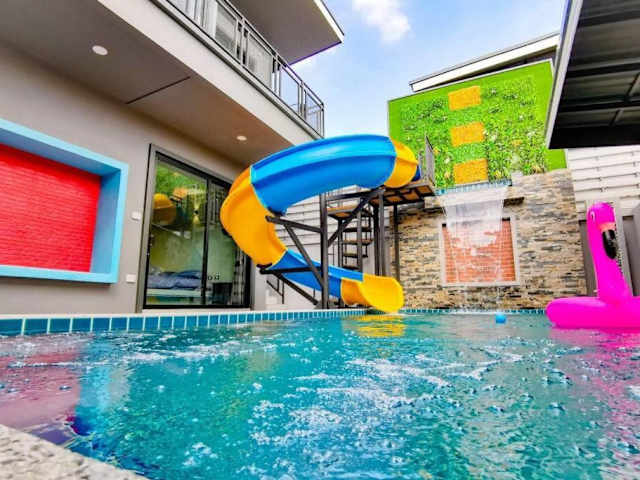 Die Lounge in der Loft Huahin Pool Villa bietet eine Terrasse, auf der Sie sich entspannen und die Sonne genießen können. In der Nähe gibt es auch zahlreiche Aktivitäten und Sehenswürdigkeiten, die Sie erkunden können, darunter Strände, Golfplätze und historische Stätten. Hua Hin, eine beliebte Touristenstadt, ist nur 12 km entfernt und bietet eine Vielzahl von Freizeitmöglichkeiten.