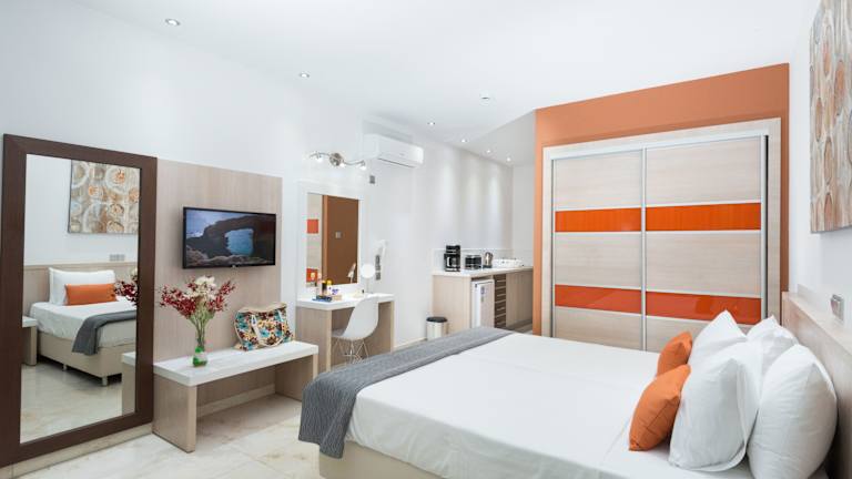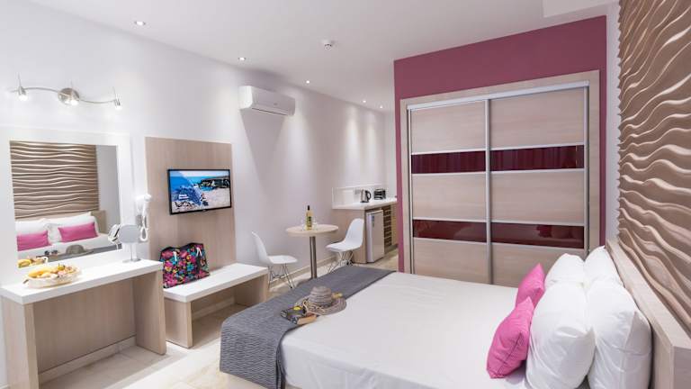 Verbringen Sie Ihren Urlaub im Hotel Loutsiana Deluxe Apts und genießen Sie eine freundliche und entspannte Atmosphäre in ruhiger Lage, nur wenige Schritte vom lebhaften Ayia Napa entfernt. Die geräumigen Apartments bieten Ihnen allen Komfort, den Sie benötigen, mit großzügigen Balkonen oder Terrassen und kostenfreiem WLAN. Der große Pool mit Whirlpool-Bereich und die schönen Gärten laden zum Entspannen ein. Für sportliche Aktivitäten steht Ihnen ein Fitnessraum zur Verfügung und im Restaurant am Pool können Sie regionale und internationale Speisen sowie Snacks genießen. Die Bushaltestelle direkt vor dem Hotel ermöglicht Ihnen eine einfache Erkundung der Umgebung.