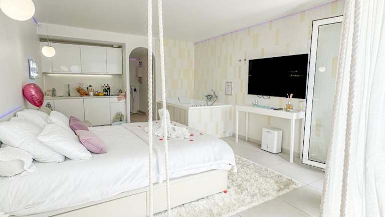 Die Wohnung verfügt über ein Schlafzimmer, ein Badezimmer sowie eine voll ausgestattete Küche. Zur Ausstattung gehören Bettwäsche, Handtücher, ein Flachbild-TV, ein Essbereich und ein Balkon mit Blick auf die Stadt. Zusätzlich stehen ein Whirlpool und Nichtraucherzimmer zur Verfügung.