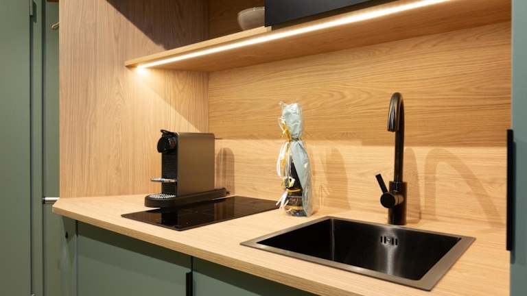 Die Ferienwohnung umfasst 1 Schlafzimmer und eine Küchenzeile, die mit einem Kühlschrank und einer Mikrowelle ausgestattet ist. Das Badezimmer verfügt über einen Whirlpool und einen Haartrockner. Die gesamte Unterkunft ist so gestaltet, dass ein gemütliches und entspannendes Ambiente entsteht.