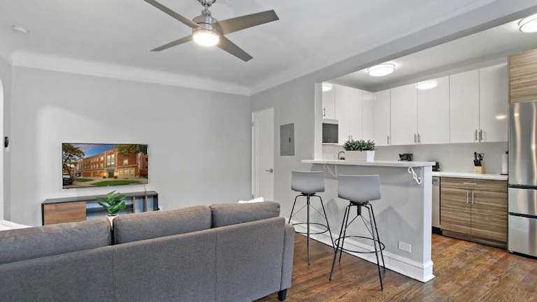 In der Nähe des Apartments gibt es viele Möglichkeiten für sportliche Aktivitäten und Freizeitunternehmungen. Die Loyola University Chicago ist nur 6 km entfernt und bietet verschiedene Sporteinrichtungen und Veranstaltungen. Wenn Sie ein Baseball-Fan sind, können Sie das Wrigley Field besuchen, das nur 12 km entfernt liegt. Für weitere Unterhaltungsmöglichkeiten können Sie auch das nahe gelegene Stadtzentrum von Evanston erkunden, das eine Vielzahl von Geschäften, Restaurants und kulturellen Veranstaltungen bietet.