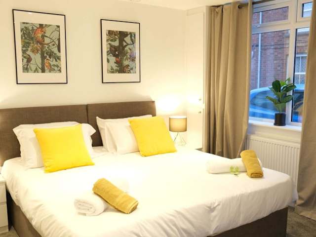 Das Lovely 2 Bed Apartment w Garden near Northampton ist eine Ferienwohnung, die mit einem Garten und einer Veranda ausgestattet ist. Gästen stehen kostenloses WLAN und eine Nichtraucherumgebung zur Verfügung. Die Unterkunft wird von einem privaten Gastgeber geführt und ermöglicht einen Check-in ab 15:00 Uhr bis 22:00 Uhr sowie einen Check-out bis 10:00 Uhr. Bei Anreise können die Gäste zwischen einer rückerstattbaren Kaution oder einer nicht rückerstattbaren Schadensabsicherung entscheiden.