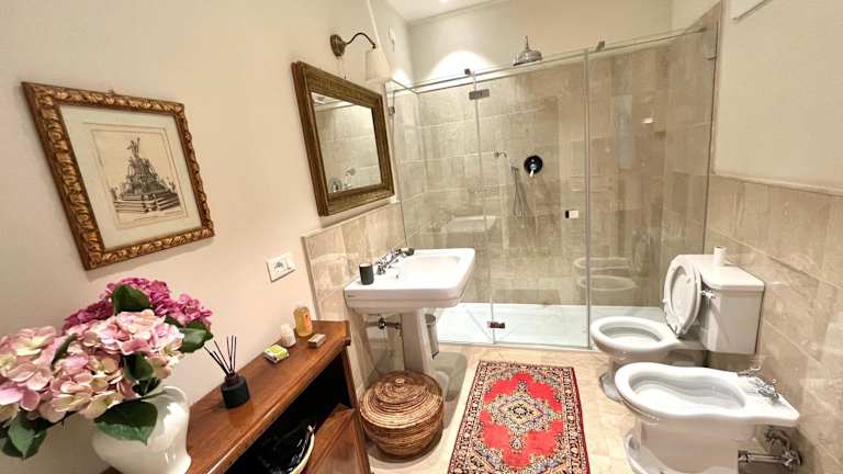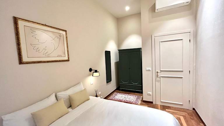 Die Ferienwohnung umfasst zwei Schlafzimmer und ein Wohnzimmer. Die Küche ist vollständig ausgestattet, einschließlich Kühlschrank und Kaffeemaschine. Es stehen zwei Badezimmer mit Bidet und Dusche zur Verfügung. Bettwäsche und Handtücher werden bereitgestellt und die Unterkunft ist klimatisiert. Weitere Annehmlichkeiten sind Brettspiele/Puzzle und moderne Sicherheits- sowie Hygienemaßnahmen.