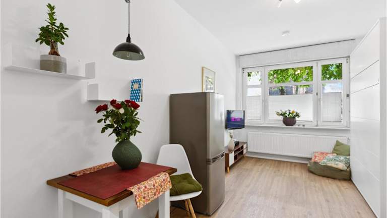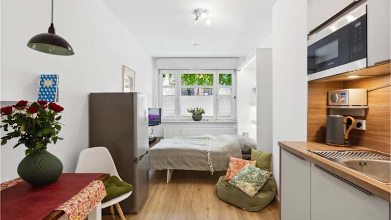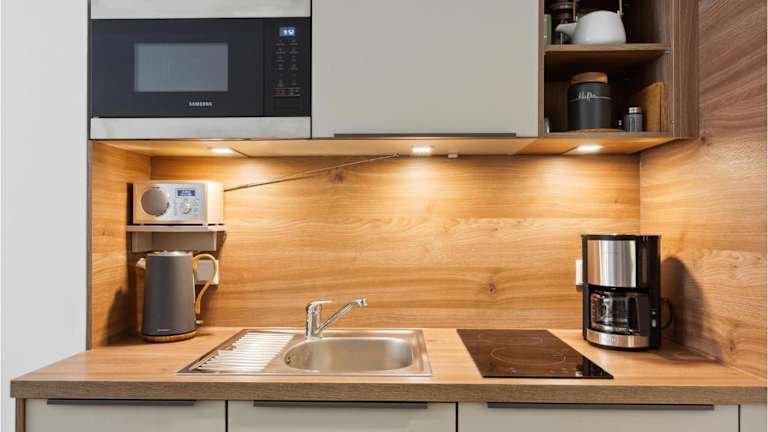 Die Ferienwohnung verfügt über ein Wohnzimmer mit TV sowie eine gut ausgestattete Küche, die es Gästen ermöglicht, sich eigenständig zu versorgen.