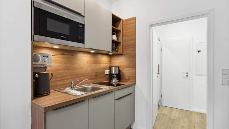 Die Küche der Unterkunft ist mit einem Kühlschrank, einem Geschirrspüler, einer Mikrowelle und einer Kaffeemaschine ausgestattet, was die Selbstverpflegung erleichtert.