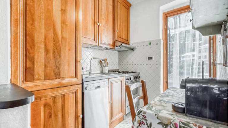 Die Unterkunft verfügt über eine eigene Küche, ausgestattet mit einem Kühlschrank und einem Geschirrspüler, um eine Selbstverpflegung zu ermöglichen.