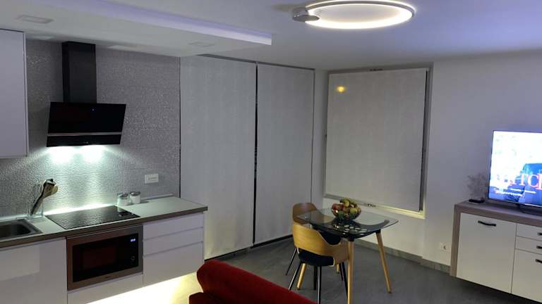 Das Apartment verfügt über 1 Schlafzimmer und 1 Badezimmer. Zur Ausstattung gehören Bettwäsche, Handtücher, ein Flachbild-TV mit Satellitenkanälen, ein Essbereich und eine voll ausgestattete Küche. Eine Terrasse mit Blick auf die Berge ist ebenfalls vorhanden.