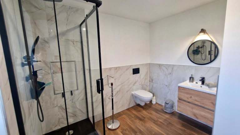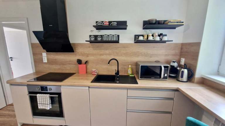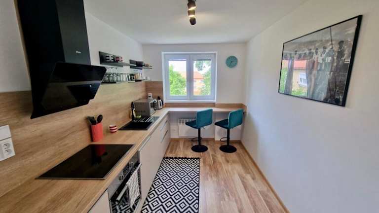 Die Ferienwohnung umfasst 2 Schlafzimmer, ein Wohnzimmer sowie eine voll ausgestattete Küche, die mit einem Kühlschrank und einer Kaffeemaschine versehen ist. Das Badezimmer ist mit einer Dusche und einem Haartrockner ausgestattet. Handtücher und Bettwäsche können gegen Aufpreis bereitgestellt werden.
