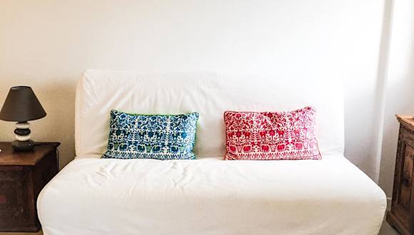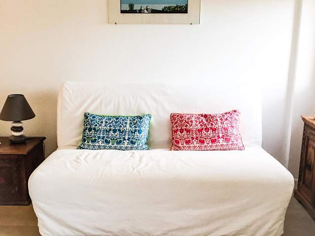 Die Ferienwohnung verfügt über ein Schlafzimmer, ein Wohnzimmer und eine voll ausgestattete Küche mit Kühlschrank und Kaffeemaschine. Zum Bad gehören ein Bidet und eine Dusche. Handtücher und Bettwäsche werden bereitgestellt.