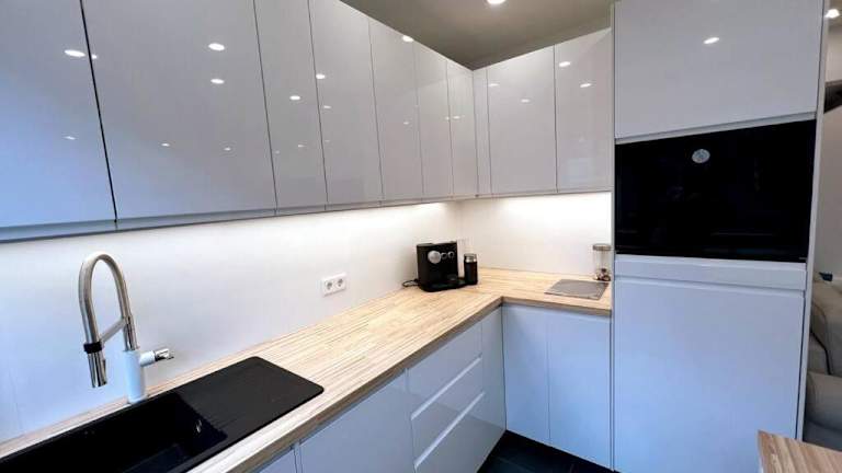 Die Ferienwohnung verfügt über 1 Schlafzimmer, eine Küche, die mit einem Kühlschrank und einem Geschirrspüler ausgestattet ist, einen Flachbild-TV sowie einen Sitzbereich. Das Badezimmer ist mit einer Dusche ausgestattet. Handtücher und Bettwäsche werden bereitgestellt.