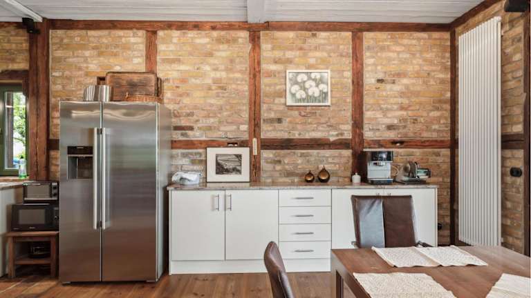 Die Unterkunft verfügt über eine Küche mit Kühlschrank, Geschirrspüler und Ofen, die eine Selbstverpflegung ermöglicht. Es gibt keine spezifischen Informationen zu weiteren Verpflegungsmöglichkeiten vor Ort.