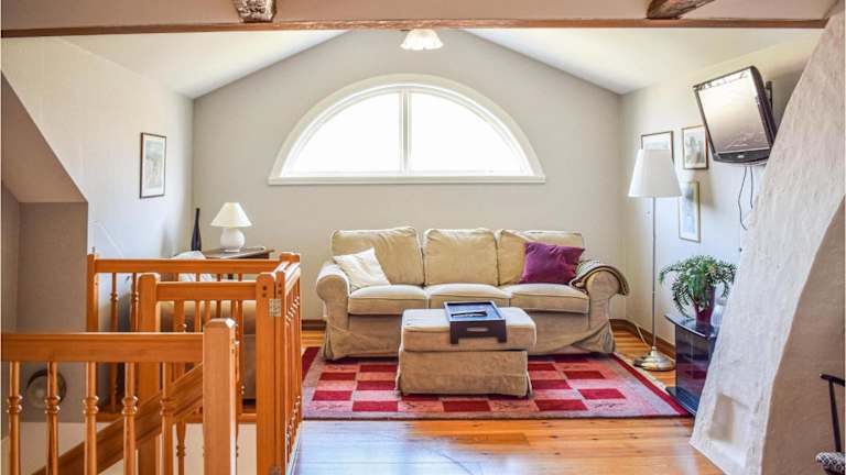 Das Ferienhaus bietet Platz in drei Schlafzimmern und einem Wohnzimmer. Zudem stehen zwei Badezimmer mit Dusche zur Verfügung. Ein Fernseher ist ebenfalls vorhanden.