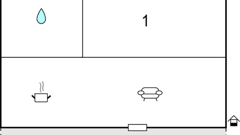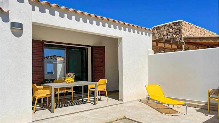 Das Ferienhaus verfügt über ein Schlafzimmer, ein Wohnzimmer, eine voll ausgestattete Küche mit Kühlschrank und Kaffeemaschine sowie ein Badezimmer mit Dusche. Zur Ausstattung gehören Klimaanlage und Gartenmöbel.