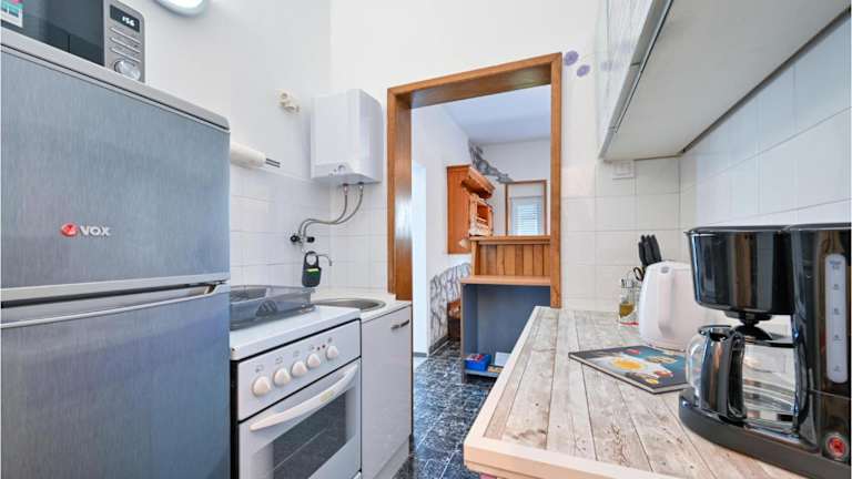 Das Ferienhaus verfügt über zwei Schlafzimmer und einen Flachbild-TV. Die Küche ist mit einem Kühlschrank und einem Ofen ausgestattet.