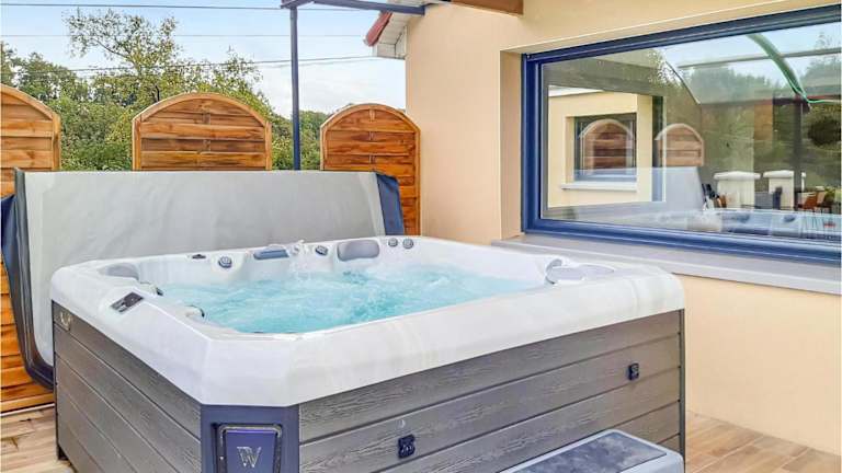 Die Unterkunft bietet ein Spa- und Wellnesscenter mit Sauna und Whirlpool. Ein Garten ist ebenfalls vorhanden und gefüllt mit Gartenmöbeln. Angeln und Grillmöglichkeiten stehen ebenfalls zur Verfügung.