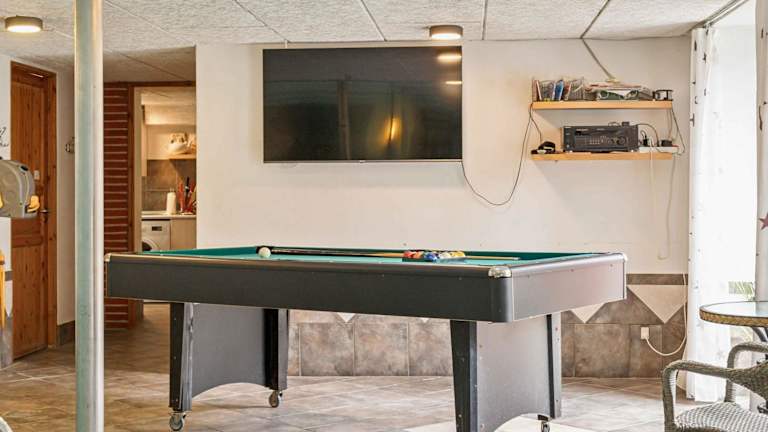 Die Unterkunft verfügt über drei Schlafzimmer, ein Wohnzimmer sowie eine gut ausgestattete Küche, die mit einem Kühlschrank und einem Geschirrspüler ausgestattet ist. Zu den Annehmlichkeiten zählen zudem ein Flachbild-TV. Die Gäste haben Zugang zu einer Vielzahl von Annehmlichkeiten, darunter Grillmöglichkeiten und Gartenmöbel.