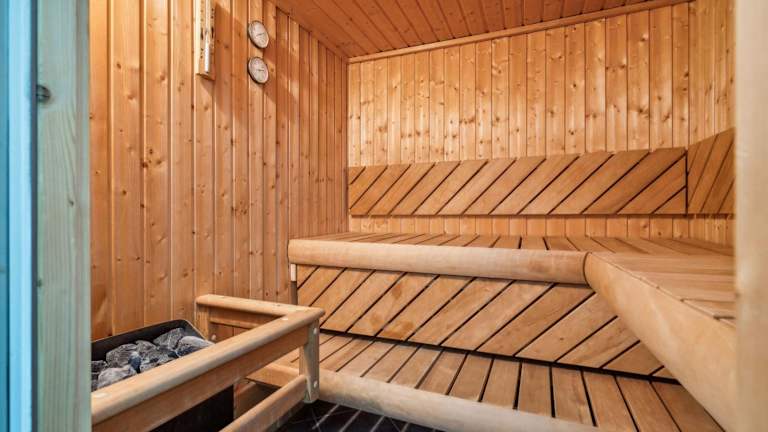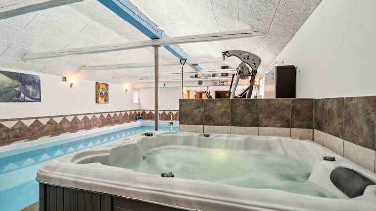 Die Villa bietet verschiedene Freizeitmöglichkeiten, darunter einen Innenpool, eine Sauna und einen Whirlpool, die zu Entspannung und Erholung einladen. Ein Garten und eine Terrasse stehen ebenfalls zur Verfügung.