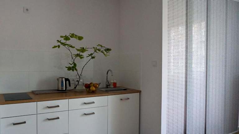Die Ferienwohnung umfasst ein Schlafzimmer, ein Wohnzimmer mit Flachbild-TV, eine gut ausgestattete Küchenzeile mit Kühlschrank und Herdplatte sowie ein Badezimmer mit Dusche. Handtücher und Bettwäsche werden bereitgestellt.