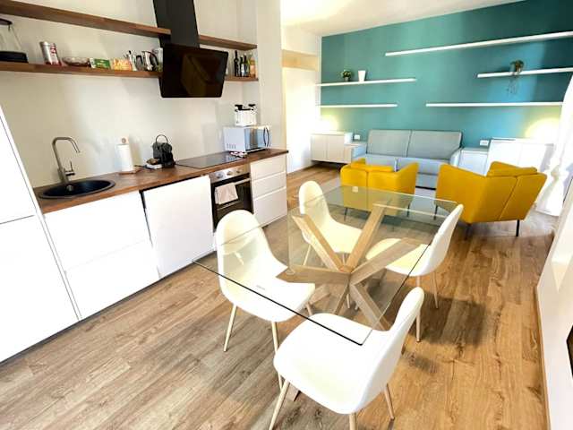 Die Wohnung besteht aus 2 Schlafzimmern, einem Wohnzimmer sowie einer voll ausgestatteten Küche mit Kühlschrank und Kaffeemaschine. Es sind zudem 2 Badezimmer mit Bidet und Dusche vorhanden. Handtücher und Bettwäsche werden bereitgestellt.
