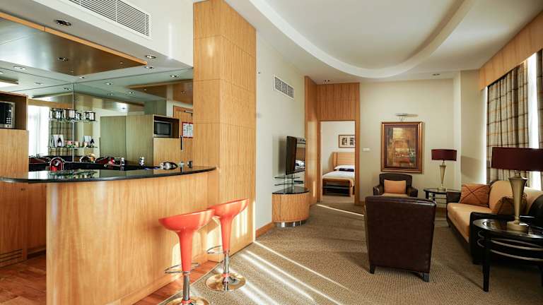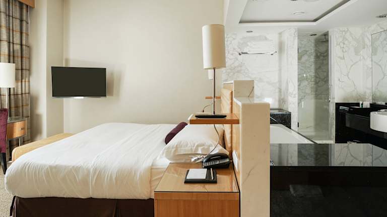 Die Zimmer sind klimatisiert und bieten ein angenehmes Raumklima mit Doppel-, Queensize- oder Kingsize-Betten. Zur Ausstattung gehören ein Safe, eine Minibar, ein Schreibtisch, eine Tee-/Kaffeemaschine, ein Bügelset, eine Hosenpresse, ein Telefon, ein Flachbild-TV, ein Radio, ein DVD-Player, ein Wecker und kostenloses WiFi. Die Badezimmer sind mit Dusche und Badewanne ausgestattet und bieten Annehmlichkeiten wie einen Haartrockner, Bademäntel und Kosmetikartikel. Barrierefreie Zimmer sind ebenfalls verfügbar.