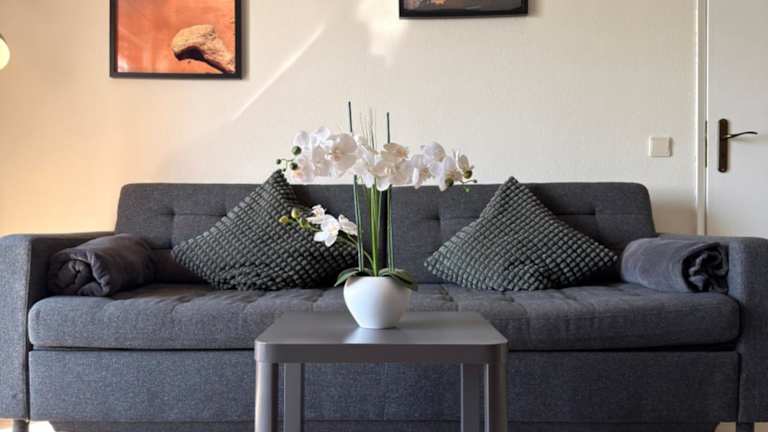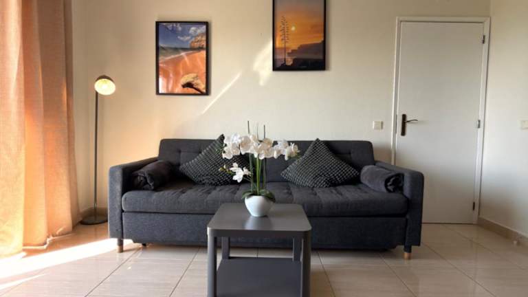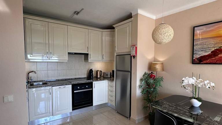 Die Ferienwohnung besteht aus einem Schlafzimmer, einem Wohnzimmer und einer voll ausgestatteten Küche, die mit einem Kühlschrank und einer Kaffeemaschine ausgestattet ist. Ein Badezimmer mit Dusche und Haartrockner gehört ebenfalls zur Ausstattung. Handtücher und Bettwäsche sind im Preis inbegriffen.