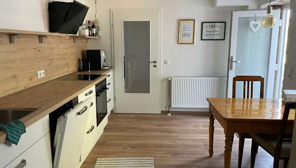 Die Ferienwohnung umfasst zwei Schlafzimmer, ein Wohnzimmer mit Flachbild-TV und eine gut ausgestattete Küche. Diese ist mit einem Kühlschrank und Geschirrspüler ausgestattet. Zudem gibt es ein Badezimmer mit Dusche. Handtücher und Bettwäsche werden bereitgestellt.