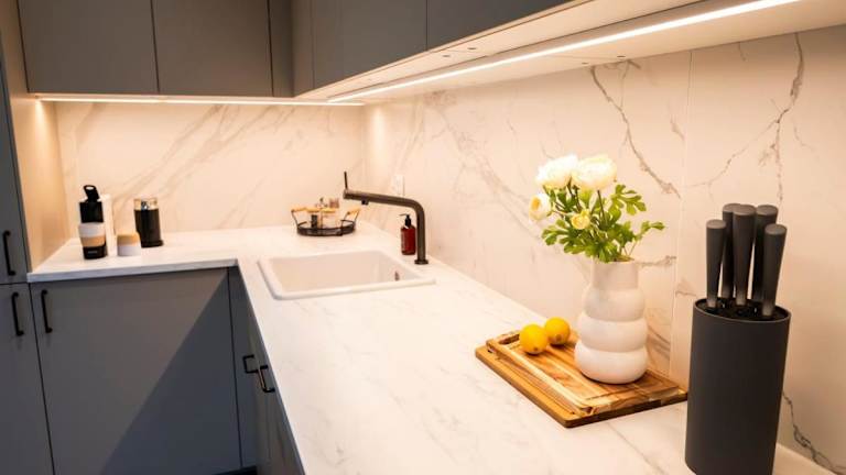 Die Ferienwohnung verfügt über Klimaanlage, ein separates Schlafzimmer, ein Wohnzimmer sowie eine voll ausgestattete Küche, die mit einem Kühlschrank und einem Geschirrspüler ausgestattet ist. Ferner sind ein Badezimmer sowie Handtücher und Bettwäsche vorhanden.