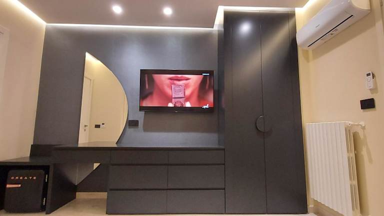Die klimatisierten Zimmer sind ausgestattet mit einem Schreibtisch, einer Kaffeemaschine, einem Kühlschrank und einem Geschirrspüler. Ein Safe und ein Flachbild-TV sind ebenfalls vorhanden. Jedes Zimmer verfügt über eine Terrasse und ein eigenes Badezimmer mit Bidet. Einige Zimmer bieten zudem einen Blick auf die Berge und alle Zimmer sind mit einem Balkon ausgestattet. Bettwäsche und Handtücher sind ebenfalls in jedem Zimmer vorhanden.