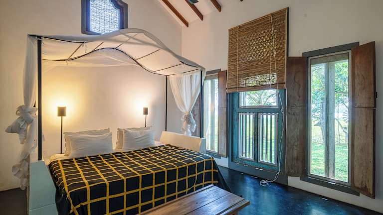 Die Zimmer im Lunuganga Estate sind komfortabel und stilvoll eingerichtet. Jedes Zimmer verfügt über Annehmlichkeiten wie kostenfreies WLAN, Klimaanlage und einen eigenen Balkon oder eine Terrasse. Die Zimmer bieten auch einen herrlichen Blick auf den Garten oder den Pool.
