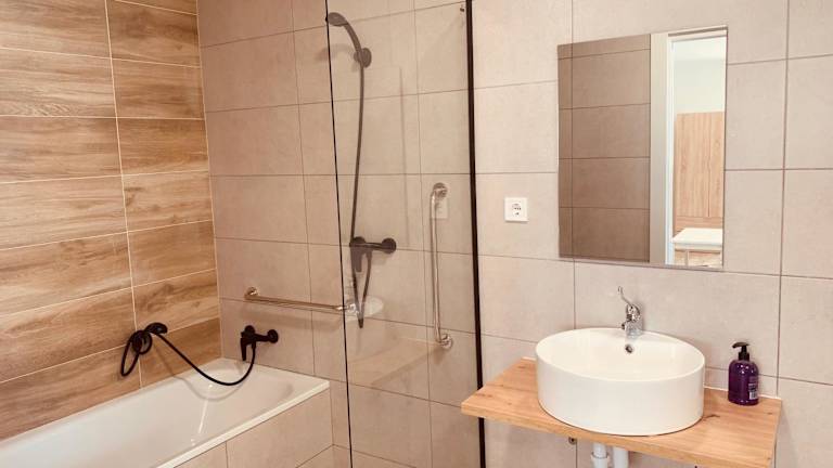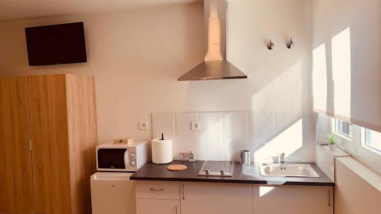 Die Apartments sind mit einer voll ausgestatteten Küche, einschließlich Kühlschrank und Kaffeemaschine, ausgestattet. Ein Flachbild-TV sowie ein eigenes Badezimmer mit Dusche sind ebenfalls vorhanden. Die Unterkunft bietet eine Nichtraucherumgebung in allen Bereichen sowie Heizung und Klimaanlage.
