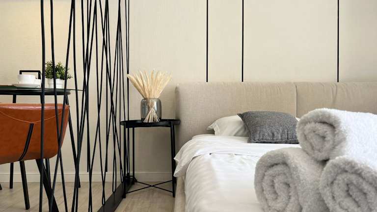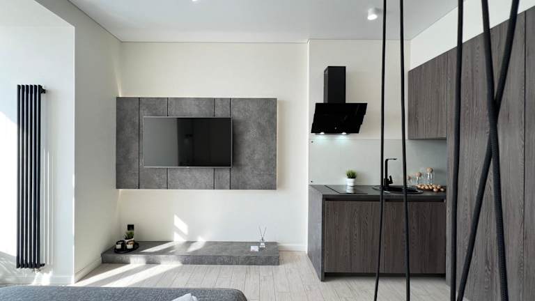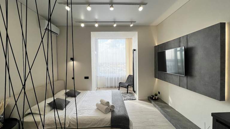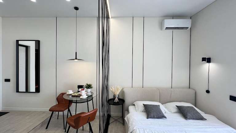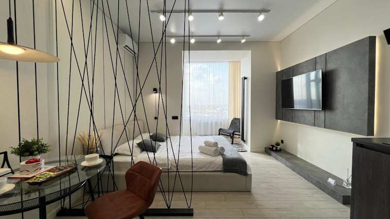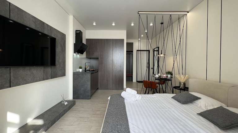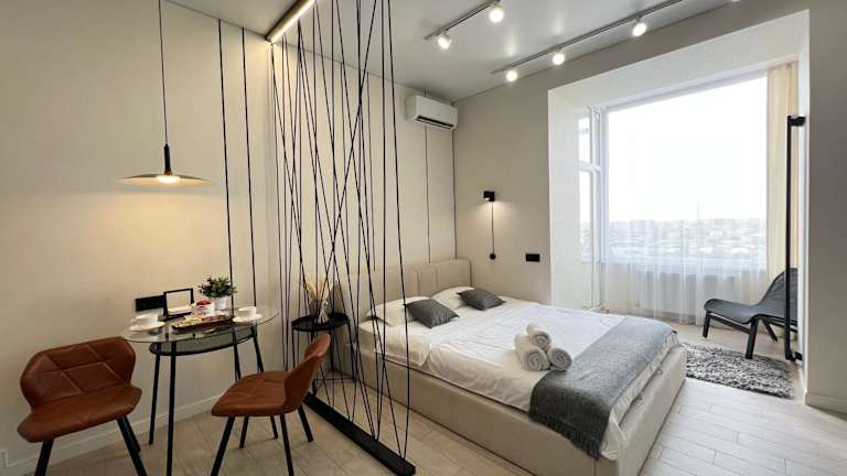 LUX Аппартаменты SMART #2 bietet Übernachtungsmöglichkeiten mit einem Balkon und kostenlosem WLAN. Die Unterkunft ist klimatisiert und verfügt über einen separaten Schlafbereich.