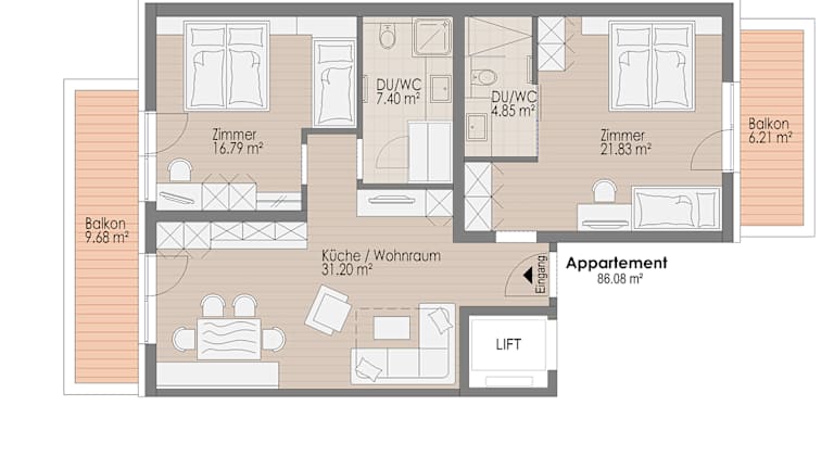 Die Ferienwohnungen von Lux sind groß geschnitten, in einer modernen Alpenarchitektur ausgeführt und vermitteln ein Wohlfühlklima. Die Gäste halten sich gerne in den Wohnungen auf, da das Platzangebot sehr gut ist und die Ausstattung sehr komplett ist.