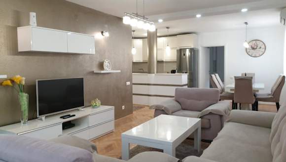 Das Lux Family Apartment KRUNA bietet geräumige Unterkünfte mit 3 Schlafzimmern, einem Wohnzimmer und einer voll ausgestatteten Küche. Das klimatisierte Apartment verfügt über eine Terrasse und einen Balkon, von denen aus Sie einen schönen Blick auf den Garten genießen können. Die Küche ist mit einem Kühlschrank und einem Wasserkocher ausgestattet, so dass Sie Ihre eigenen Mahlzeiten zubereiten können. Handtücher und Bettwäsche werden gestellt, und das Apartment verfügt auch über ein Badezimmer mit einer Dusche und kostenlosen Pflegeprodukten.