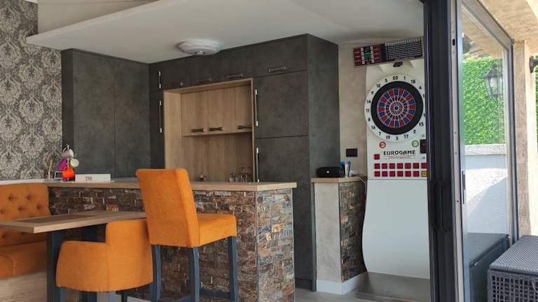 Die Villa verfügt über eine voll ausgestattete Küche, in der Sie Ihre eigenen Mahlzeiten zubereiten können. Alternativ können Sie auch den Grill im Garten nutzen, um ein köstliches Barbecue zu genießen.