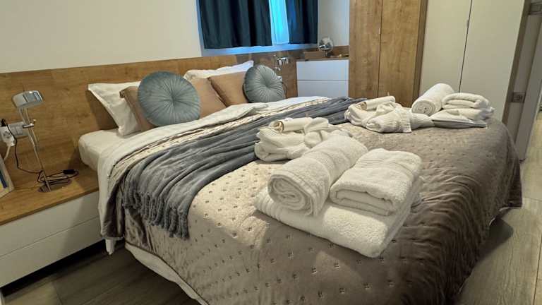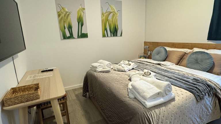 Die Zimmer bieten je nach Auswahl Stadt- oder Poolblick und sind ausgestattet mit einer vollwertigen Küche, einem Satelliten-Fernseher, einer Spielekonsole, einem Schreibtisch sowie einer Waschmaschine. Jedes Zimmer verfügt über ein eigenes Badezimmer mit Dusche und Haartrockner. Weitere Annehmlichkeiten umfassen Kühlschrank, Geschirrspüler, Ofen, Kaffeemaschine und Wasserkocher.