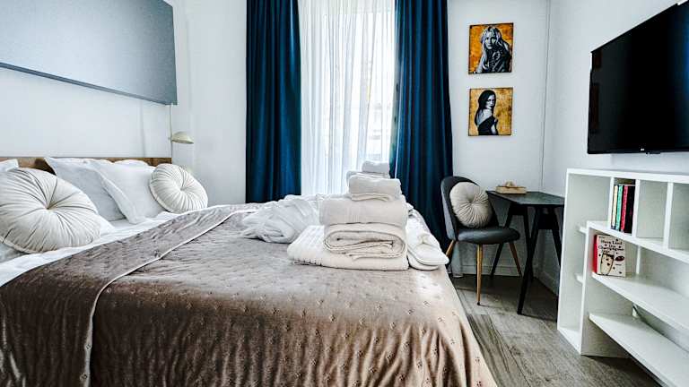 Die LuxArt City Spa Gallery Residence Krk bietet Übernachtungsmöglichkeiten mit Gartenblick und eine Vielzahl an Annehmlichkeiten, darunter einen Außenpool, einen Garten, eine Terrasse und eine Bar. Es stehen kostenlose Fahrräder zur Verfügung und es ist kostenloses WLAN sowie Privatparkplätze vorhanden. Zusätzliche Einrichtungen umfassen einen Whirlpool und Grillmöglichkeiten.